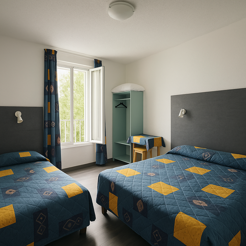 Séjournez dans une chambre confortable et lumineuse au cœur du centre-ville de Lourdes. Chaque chambre dispose d’un lit confortable, d’une salle de bain privative moderne, d’une connexion Wi-Fi gratuite et d’un espace bureau pratique. Profitez de notre parking gratuit sur place et découvrez la ville à pied : sanctuaires, basilique et sites touristiques sont à proximité immédiate. Un petit déjeuner maison est proposé en supplément pour bien commencer votre journée. Réservez dès aujourd’hui votre séjour à l’Hôtellerie du Château Fort, votre hôtel pas cher à Lourdes, alliant confort et emplacement idéal.